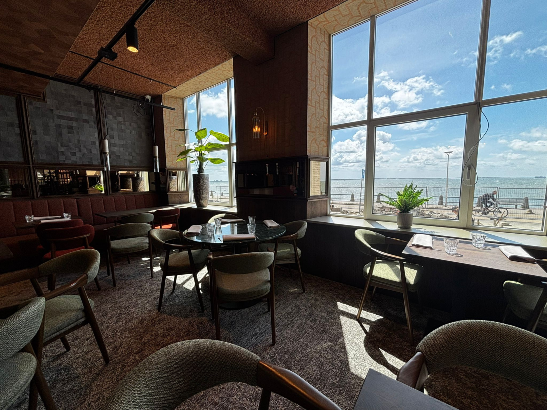 After dinner, the bar is a great spot for a drink or cocktail, with matching bites. On nice days, the terrace with sea views is recommended.