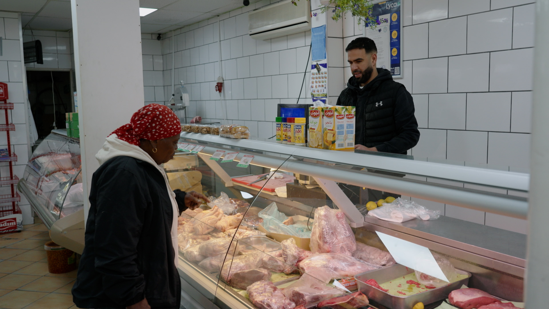 Ook buurtbewoner Joke wandelt met haar rollator de winkel binnen, op zoek naar diepvriesgarnalen. Mohammed helpt haar met inpakken. “Kijk nou, lijken toch net pantoffels? En maar drie euro!” Ze showt trots haar nieuwe schoenen, gekocht bij tweedehandswinkel Proef & Geniet aan de overkant. Het is een komen en gaan van hartelijke ontmoetingen. Ondanks de drukte is er altijd tijd voor een praatje.